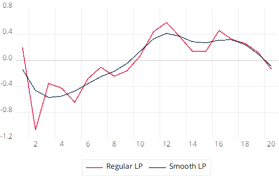 Volatile nature of impulse responses generated by regular LP method can complicate the interpretation of the output. It may not be easy to filter out the impacts coming from measurement errors. Therefore, smoothing can substantially increase the precision without compromising on the flexibility.